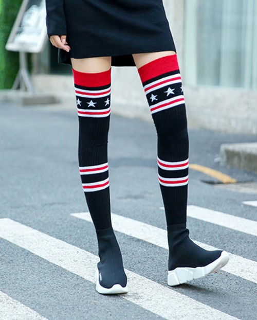 Tất ( vớ) len dài ngang đùi đen đỏ TAT0301