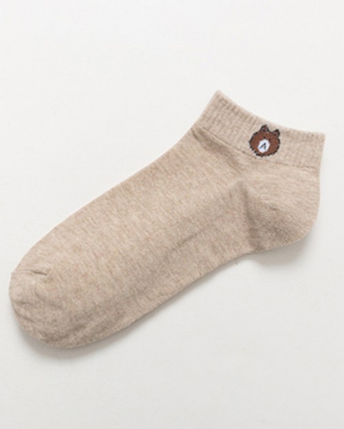 Vớ nữ ngắn màu kaki nhạt thêu hình gấu TAT2007